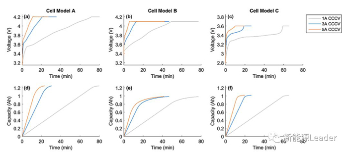 所謂的加速充電模式是在CCCV充電模式的基礎上增加了一個大電流的CC或者恒功率充電過程,從而達到降低充電時間的目的(如下圖e所示),有研究表明加速充電模式能夠有效的提升鋰電池的充電效率,同時又不會對鋰電池的循環壽命產生顯著的影響。